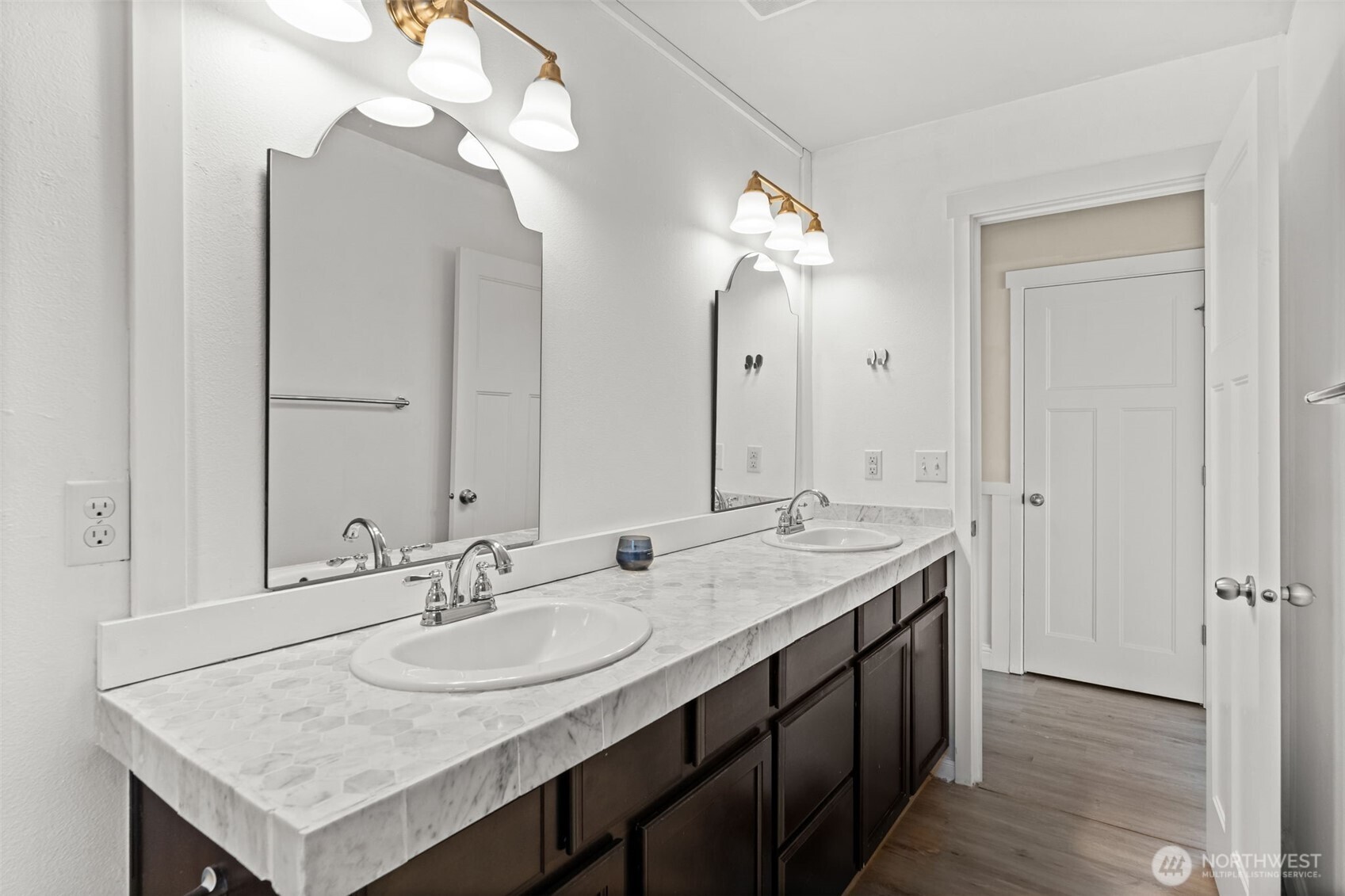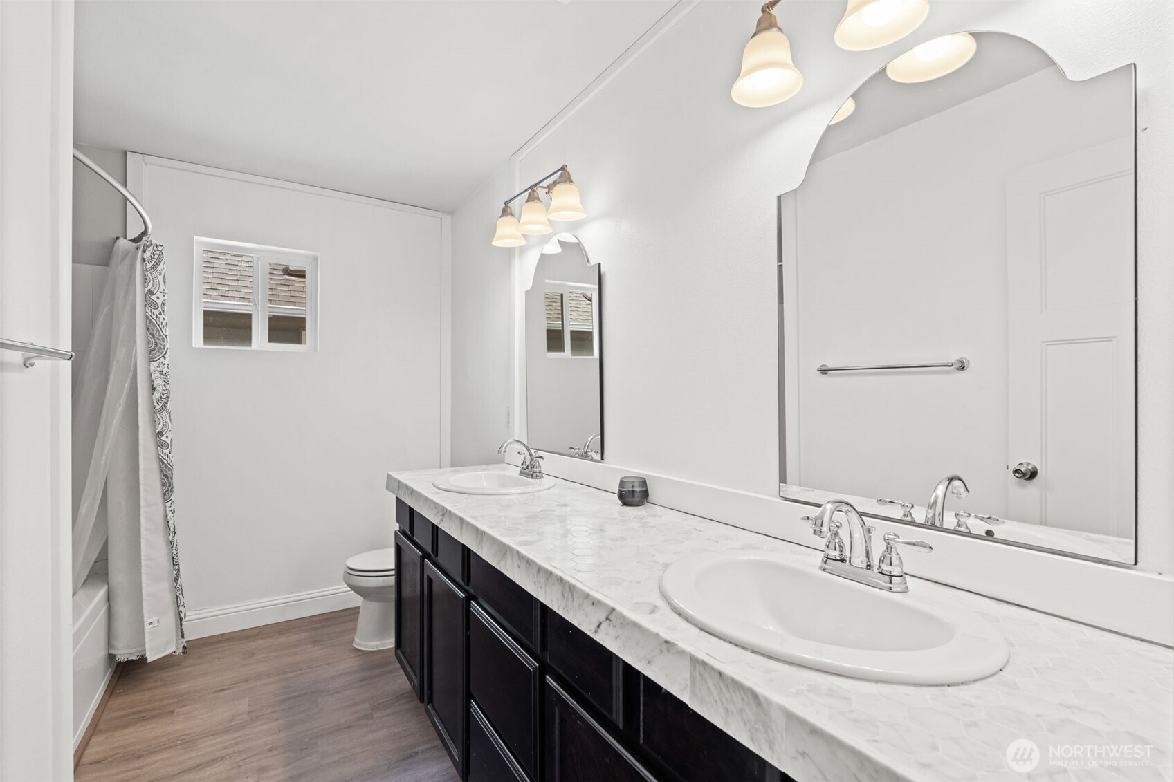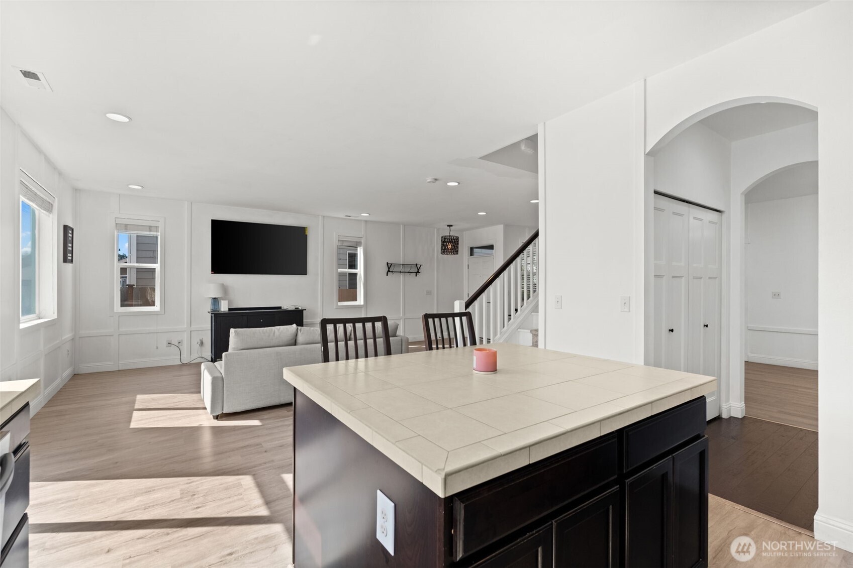 Welcome to the nicest home in the sought-after gated Wyndham Ranch Community! The entry sets the tone with custom designer walls and a statement chandelier. The spacious living room opens to a bright kitchen featuring an island with an overhang great for eating and entertaining. Upstairs, the expansive primary suite boasts LVP flooring, a large walk-in closet, and an en-suite bath. All bedrooms have a walk-in closet. Modern upgrades to the home include new LVP flooring, faux wood blinds, and central AC. Enjoy a fully fenced yard with front and backyard sprinklers. Community amenities include a gated entry, parks, walking trails, courts, common areas, and a covered picnic space--all just minutes from JBLM, shopping, and entertainment!