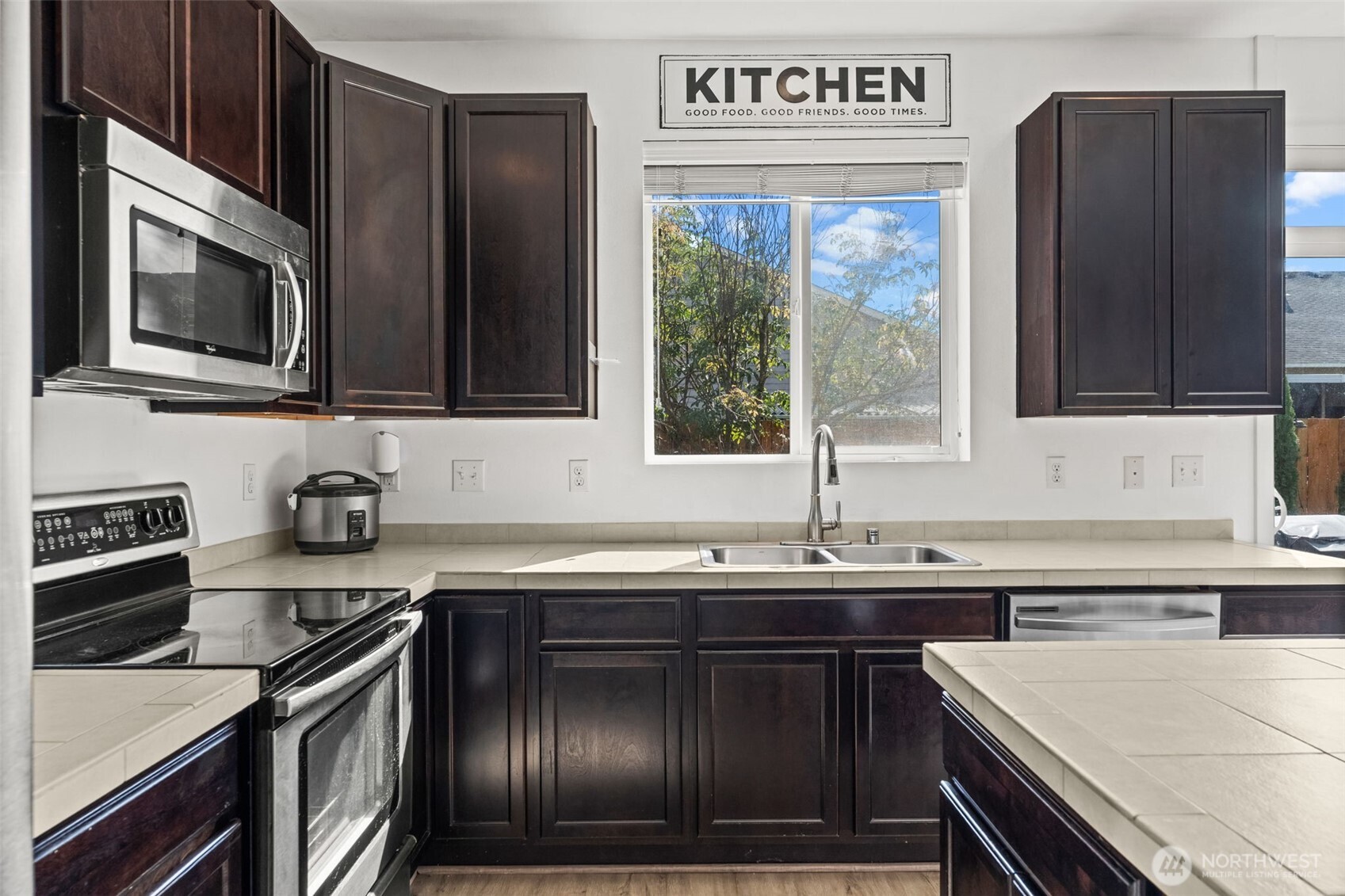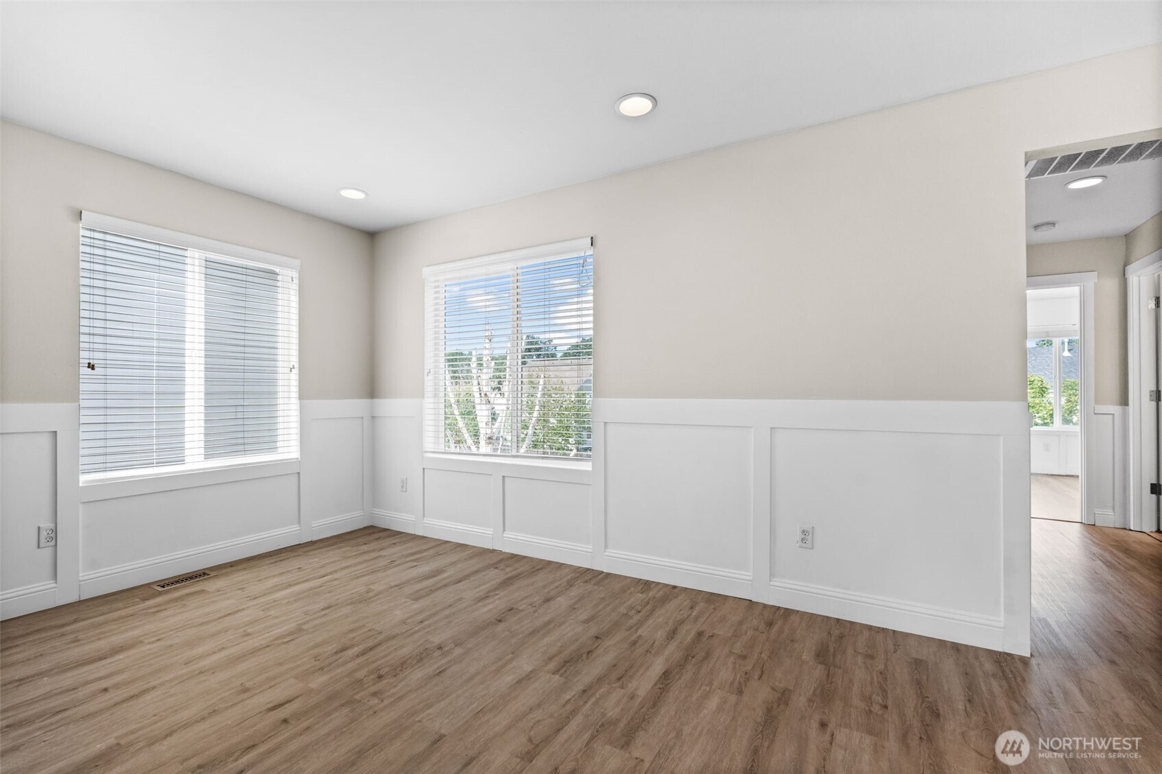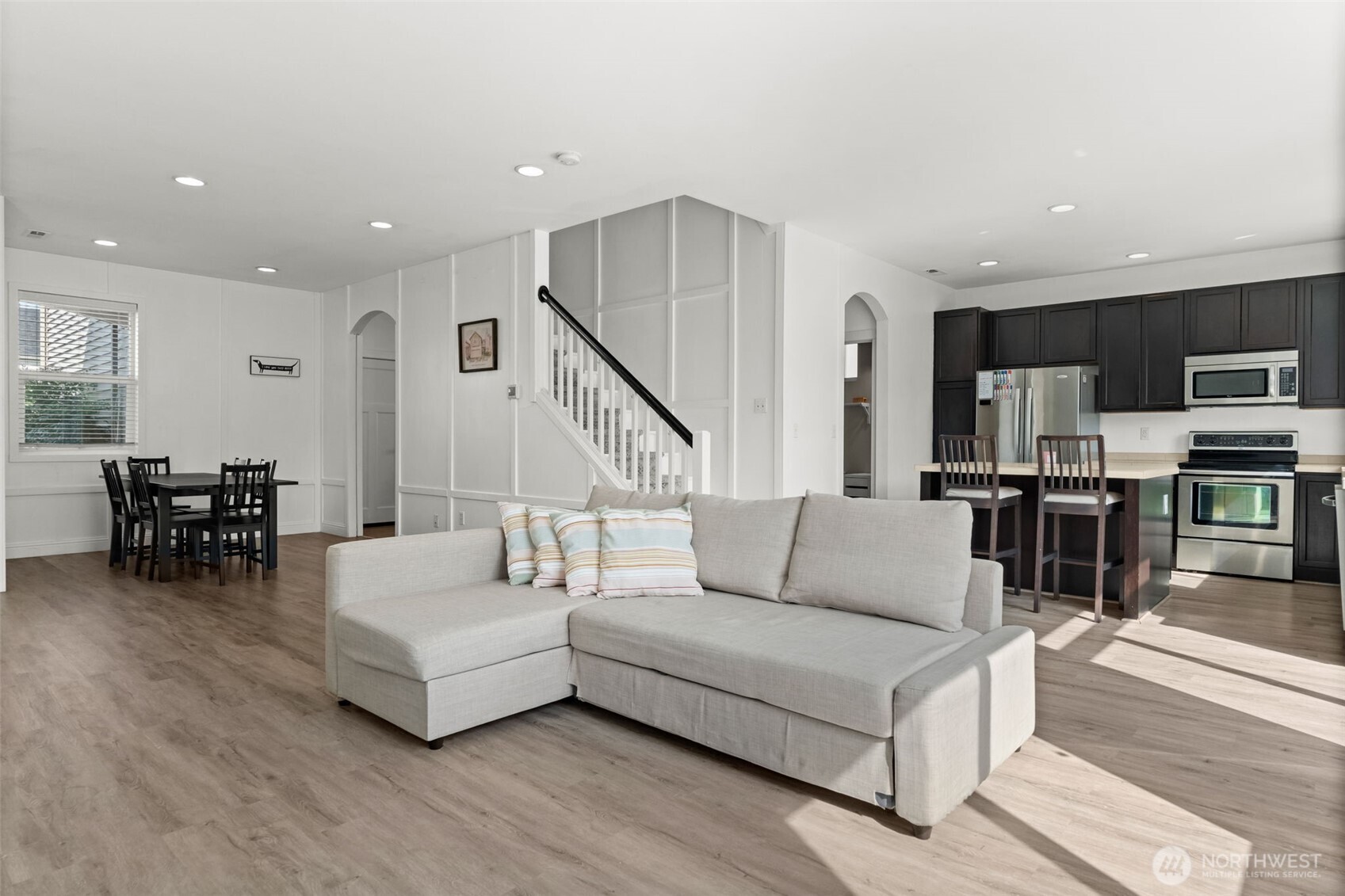 Welcome to the nicest home in the sought-after gated Wyndham Ranch Community! The entry sets the tone with custom designer walls and a statement chandelier. The spacious living room opens to a bright kitchen featuring an island with an overhang great for eating and entertaining. Upstairs, the expansive primary suite boasts LVP flooring, a large walk-in closet, and an en-suite bath. All bedrooms have a walk-in closet. Modern upgrades to the home include new LVP flooring, faux wood blinds, and central AC. Enjoy a fully fenced yard with front and backyard sprinklers. Community amenities include a gated entry, parks, walking trails, courts, common areas, and a covered picnic space--all just minutes from JBLM, shopping, and entertainment!