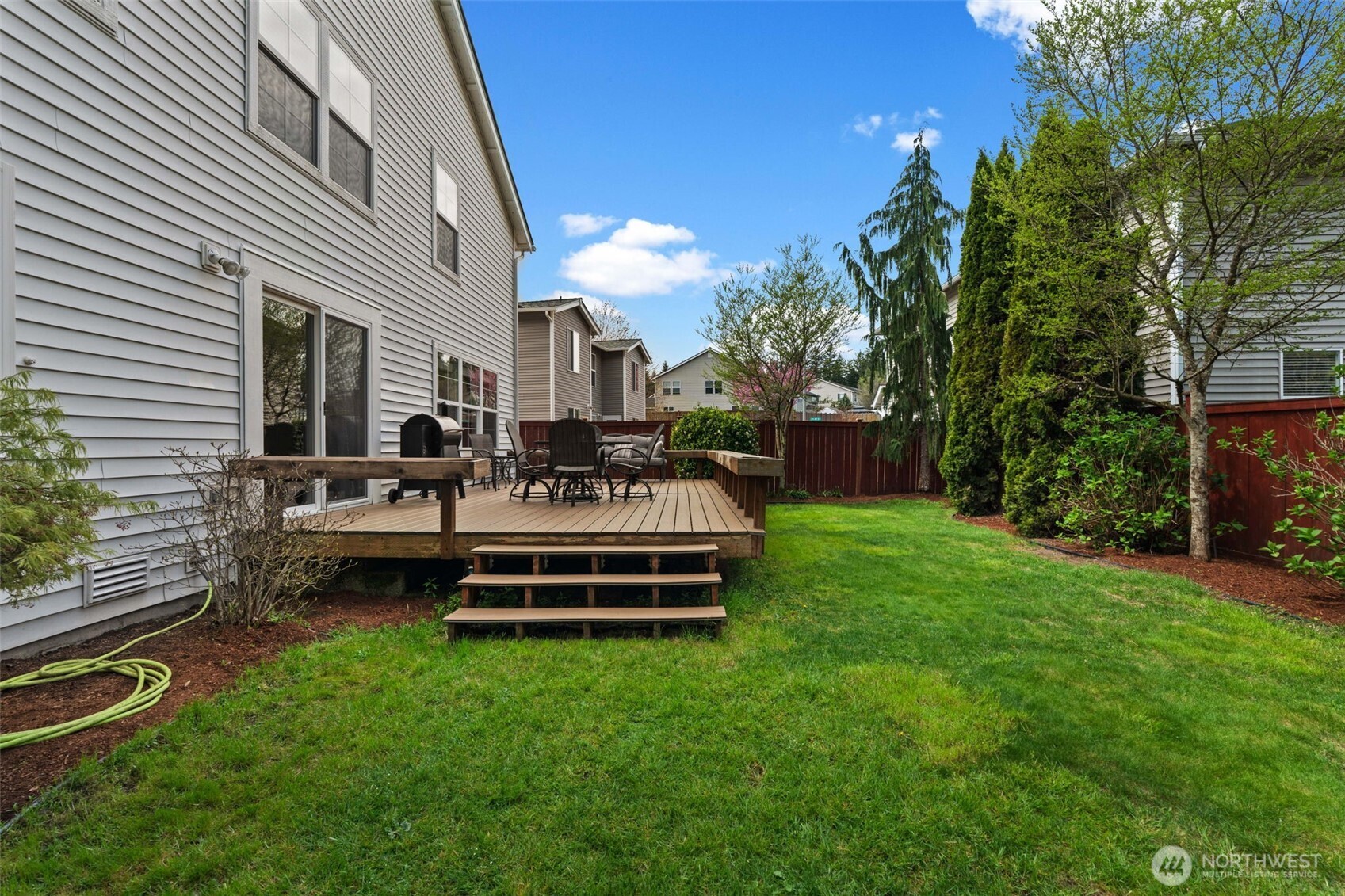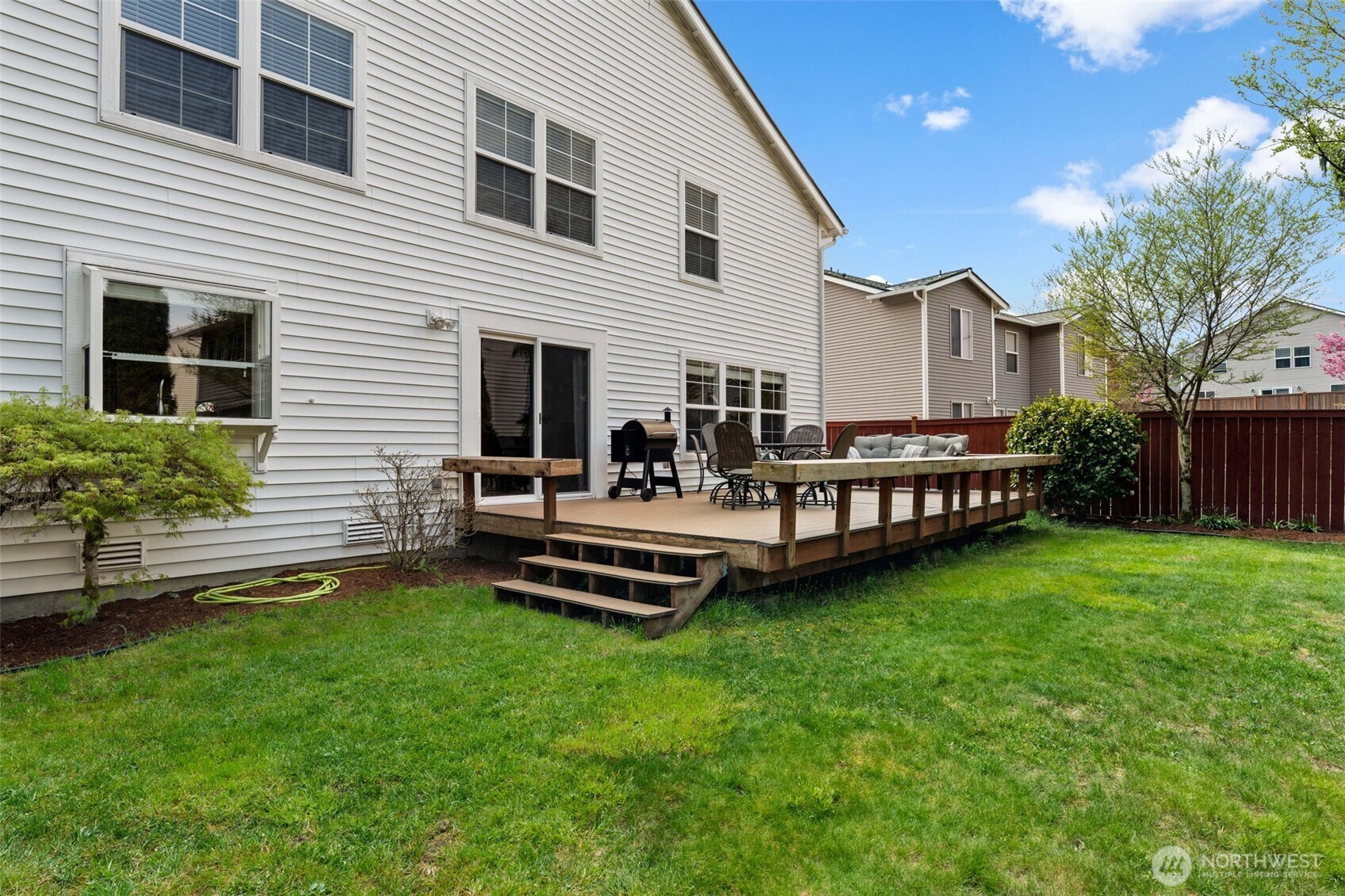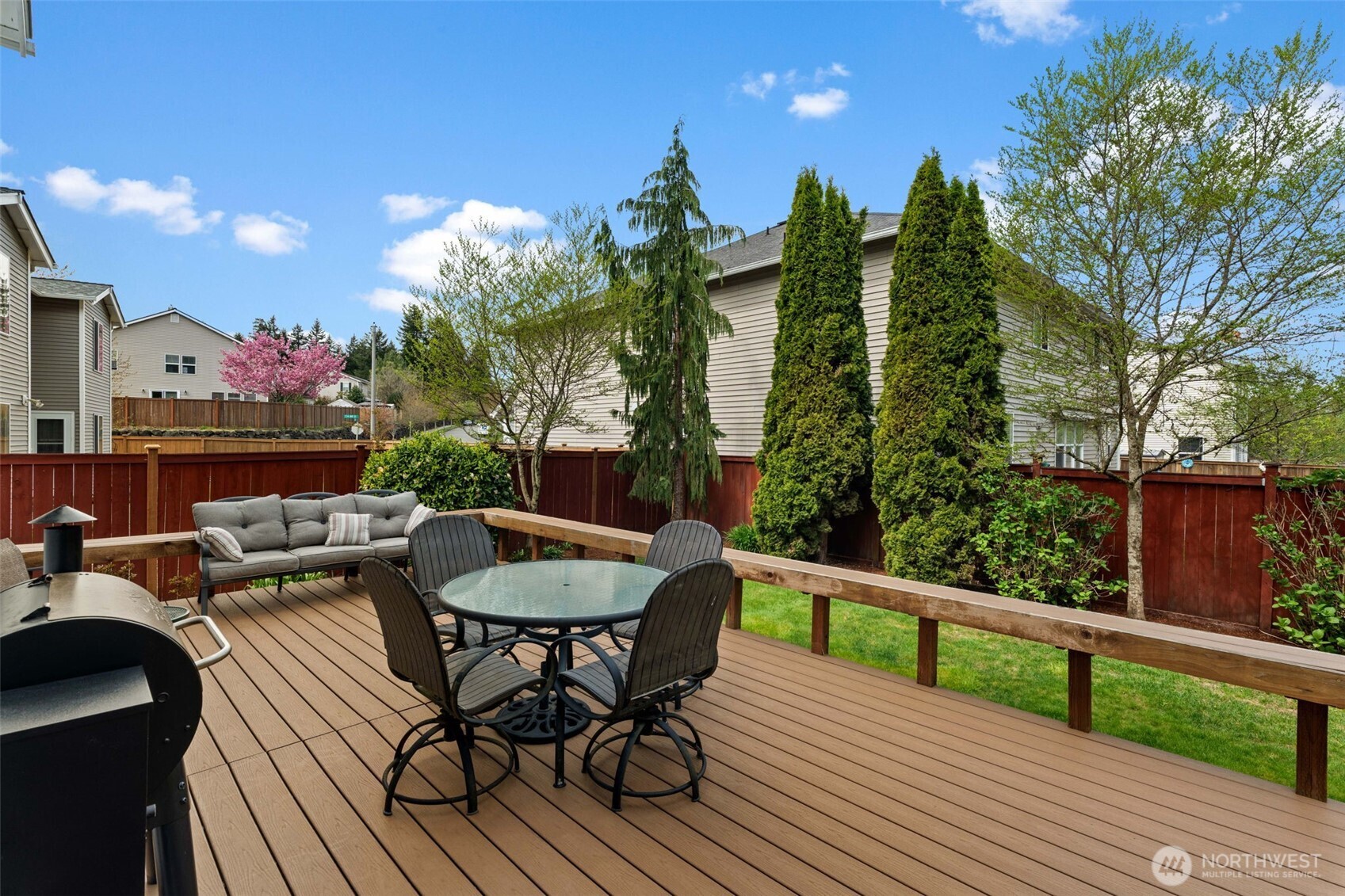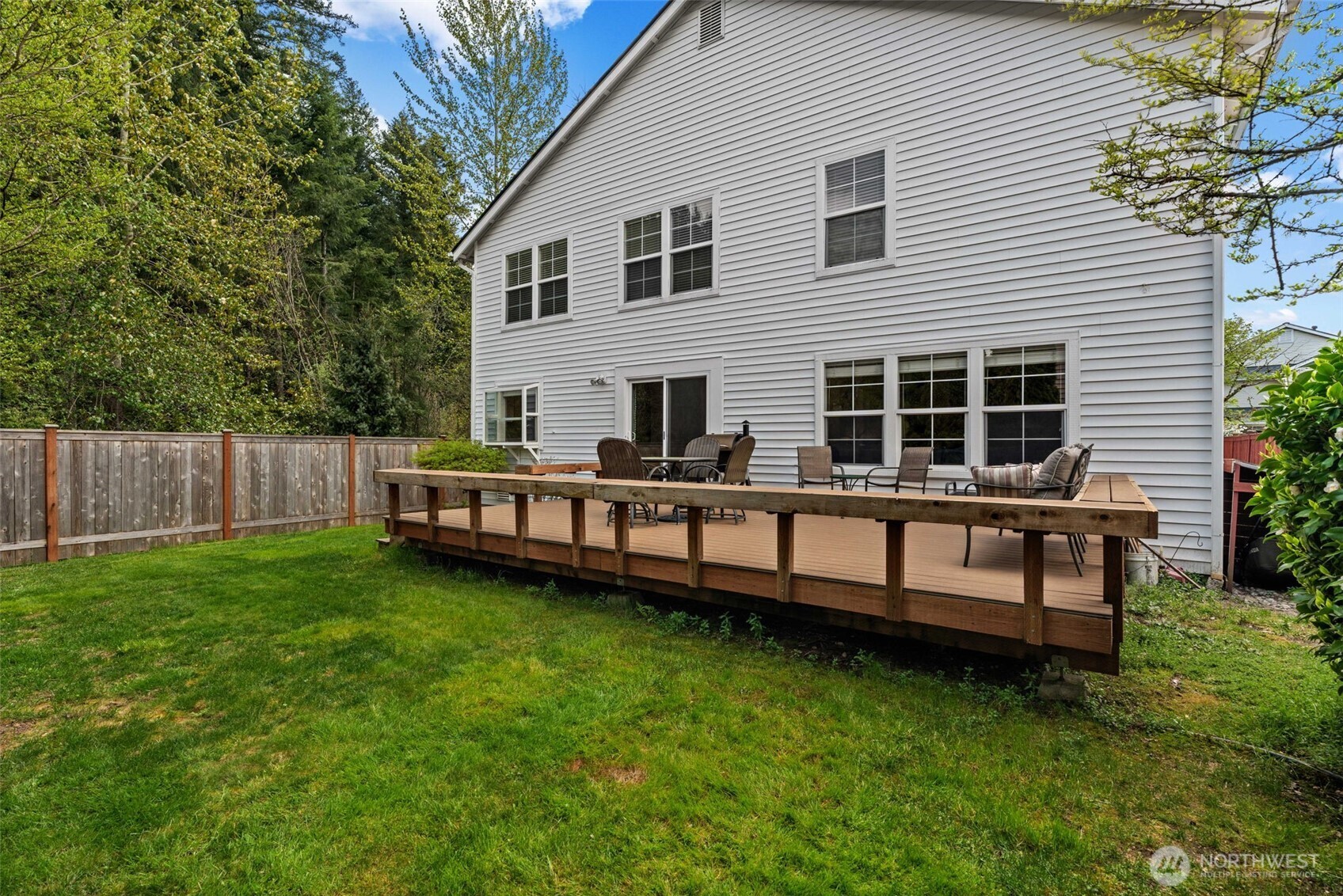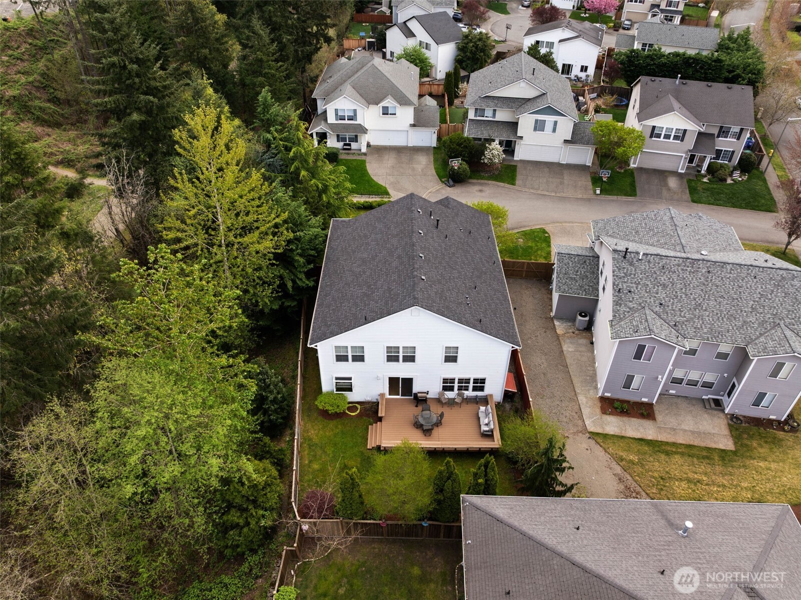 Welcome to the newest listing in the sought-after Katesridge community! Sitting at the end of a quiet cul-de-sac, this spacious 3,400 square foot home has the perfect blend of privacy and being in a prime location. Just outside of the front door is the entrance to the nature trail that leads directly to Lake Wilderness, Lake Wilderness Park, the Gnome Trail, the Maple Valley Farmer's Market, and the future Maple Valley Town Center! As you step into this 5 bedroom home, you're met with tall ceilings and tons of natural lighting. The main level features a sitting room, formal dining area, and an additional open concept living area. The kitchen has timeless granite countertops with a large overhang island for casual dining and gatherings! All of the bedrooms are upstairs and they are incredibly spacious. The expansive primary suite has an attached bathroom and a large walk-in closet. The 5th bedroom can be used as a bonus room or second living area as well! The fully-fenced back yard is also equipped with a nice-sized deck that's great for enjoying the warm months! Equipped with a new roof and central AC both installed in 2024, this home is close to shopping, amenities, and all that Maple Valley has to offer. This home is pre-inspected and ready for its new owner, call to tour today!