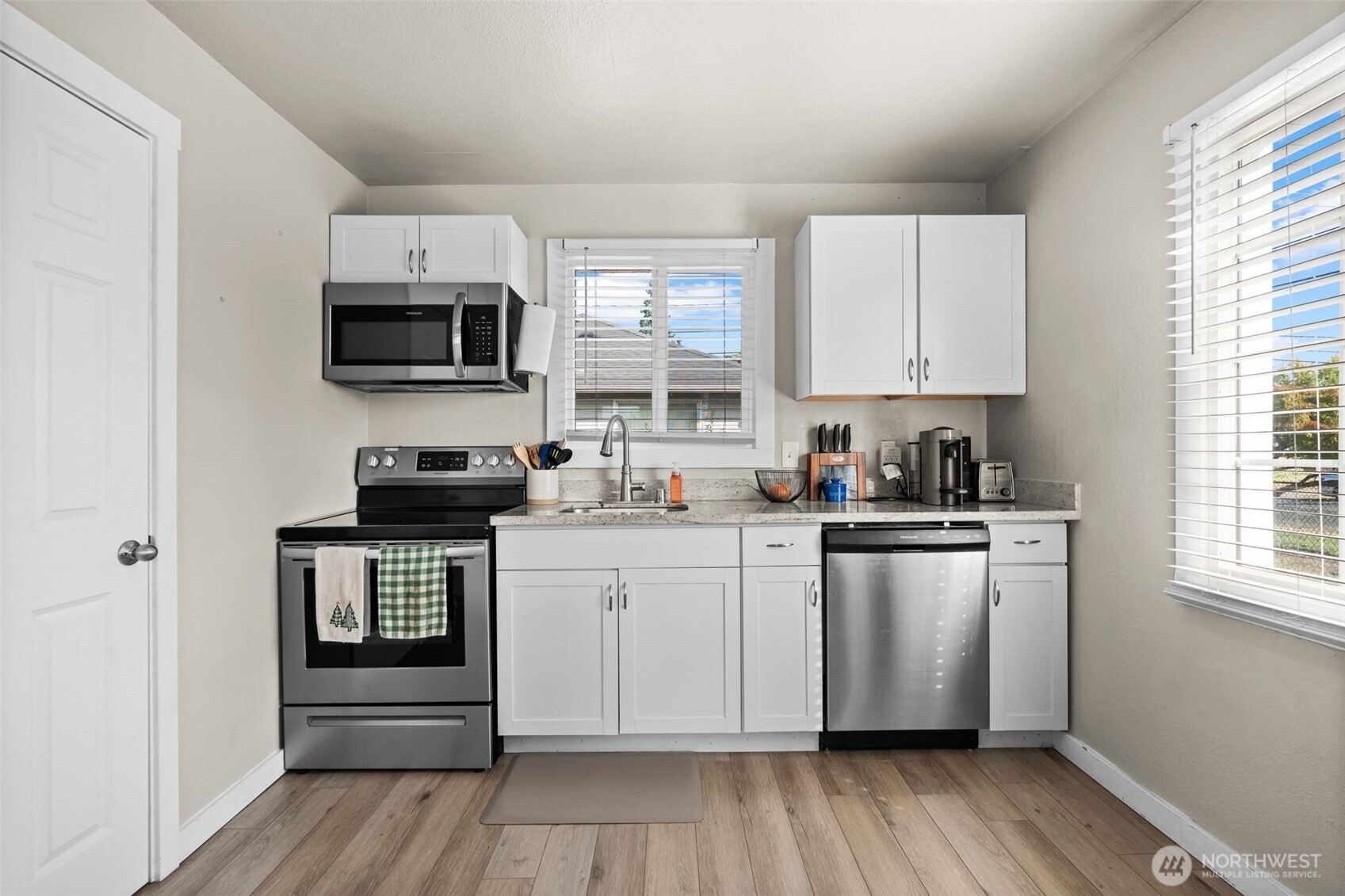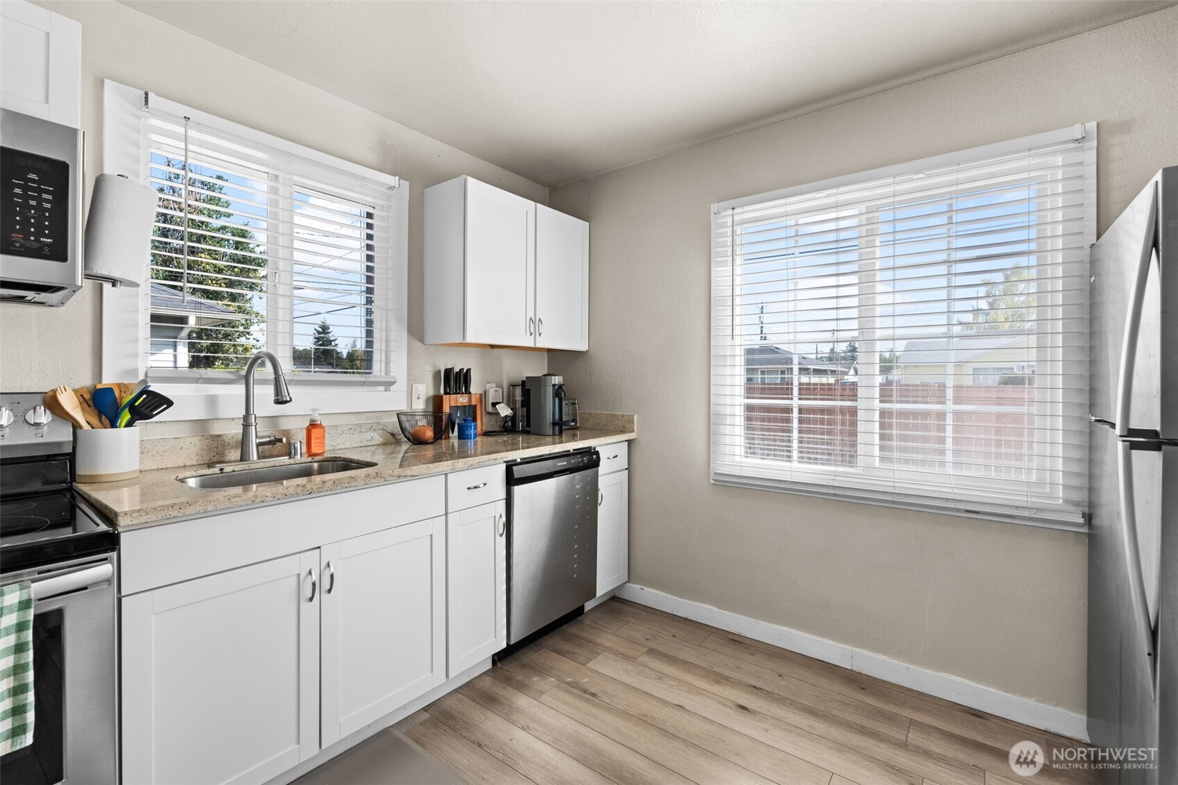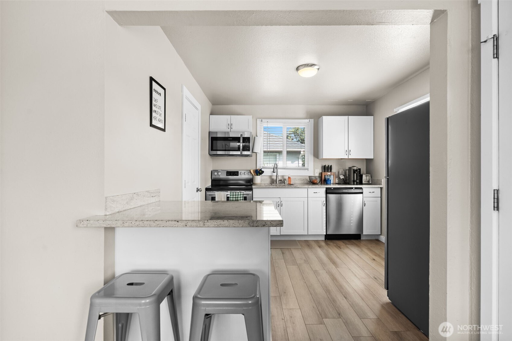 Love and care exudes itself in this gorgeous craftsman! This lovely 2 bed charmer is perched on a very private corner lot with a large yard that is fully fenced and well manicured. Enjoy evenings outside with a fire pit that's perfect for gatherings. Inside the home is a fully updated home with a great flow and layout. The kitchen is equipped with new cabinets, stainless steel appliances, granite countertops, and an overhang island that looks out into the living area for an open-concept space! Both bedroom are a good size with plenty of room. There's no carpet in this home at all! Do not miss the massive detached 2 car garage that has additional storage space. Close to all that Tacoma has to offer, JBLM, and amenities, call to tour today!