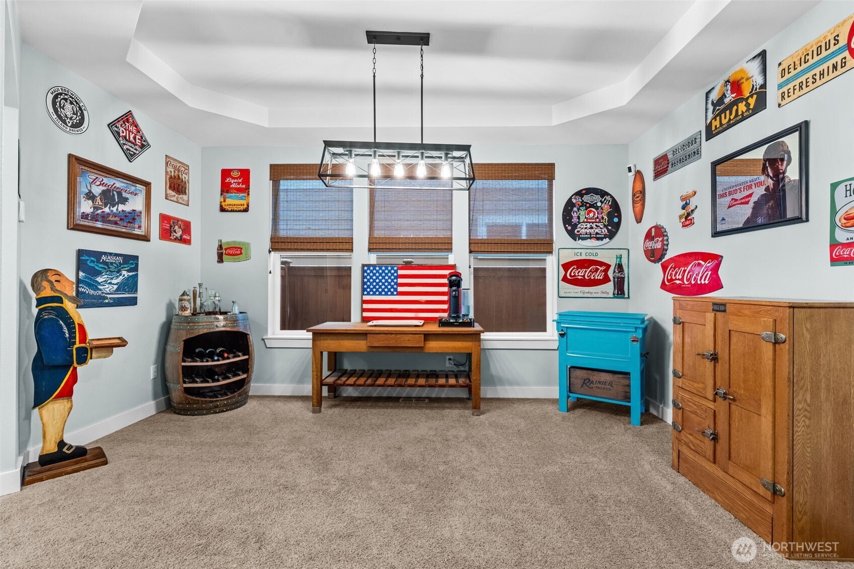 Welcome to the sought-after Edgewater community! This spacious 2,940 sq ft home offers the perfect blend of comfort, functionality, and location just moments from Edgewater Park and adjacent to Hawks Prairie Golf Course. As you enter the home you're immediately greeted with well-kept and timeless hardwood floors that extend all the way to the kitchen. Step inside to an open-concept layout featuring a formal dining room and an eat-in kitchen equipped with granite countertops, stainless steel appliances, and a double oven that's ideal for everyday living and entertaining. The massive primary suite is equipped with everything you could want! It's complete with its own fireplace, a luxurious 5-piece bathroom, and a large walk-in closet. Stay comfortable year-round with A/C, and enjoy the nice-sized backyard with a patio that is perfect for relaxing or hosting gatherings. The rare 3-car tandem garage extends all the way through to the back of the home, offering exceptional storage and versatility with a garage door to the back yard. Conveniently located near I-5 for an easy commute to JBLM, with close proximity to schools, parks, and amenities. Bonus: the home includes two Tesla chargers, and the HOA covers front yard landscaping for low-maintenance living.