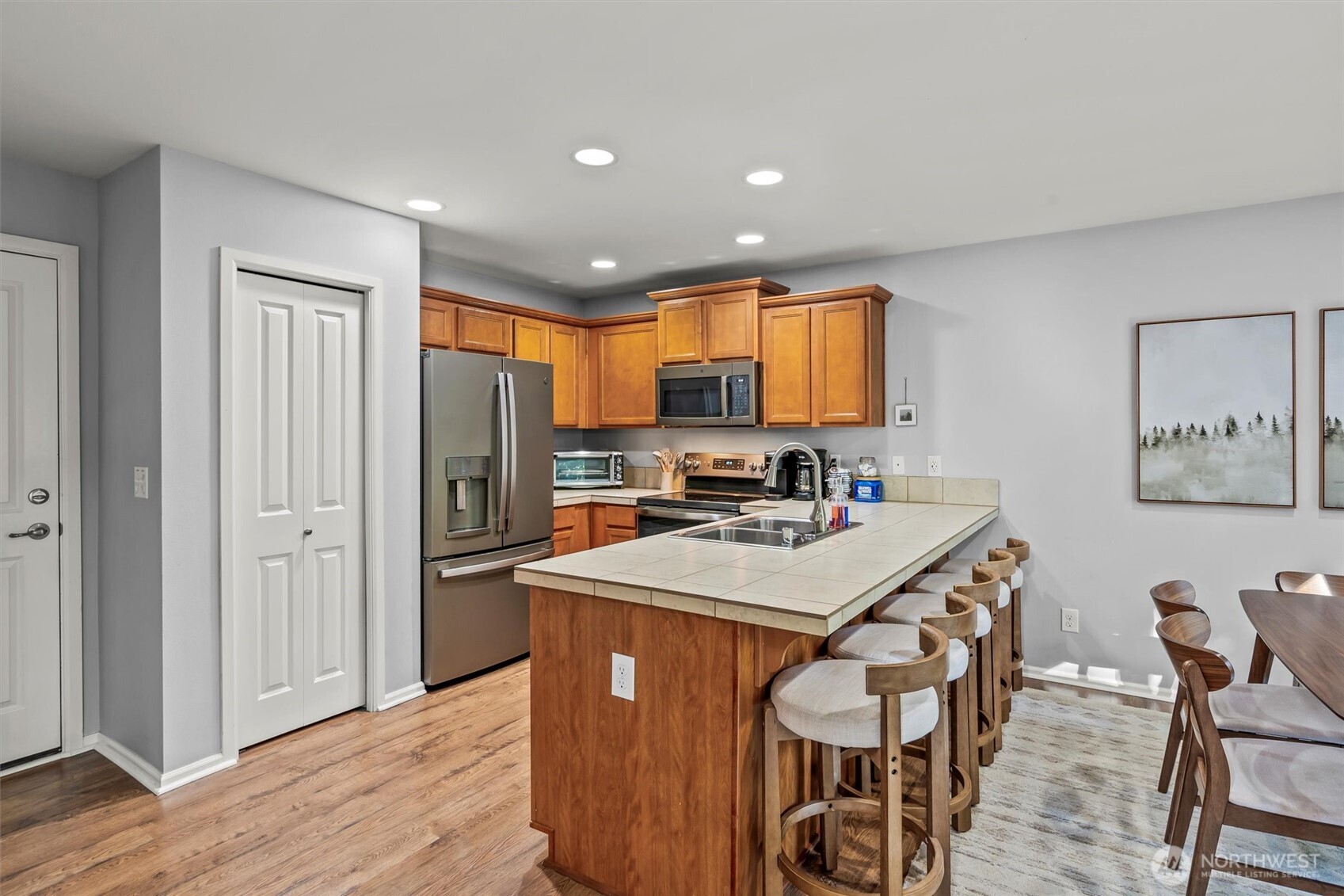 Beautiful fully furnished 4-bedroom, 2.5-bath home features newer appliances in both the kitchen and laundry room. House is in excellent condition. The garage has been upgraded into an awesome game room/movie room. A spacious rear deck is perfect for entertaining. Fully fenced back yard with slope that could be terraced for a garden. A Tesla charger is included for electric vehicles. Neighborhood park and playground just 2 doors away from this home. Close proximity to shopping, schools, and easy access to I-5.