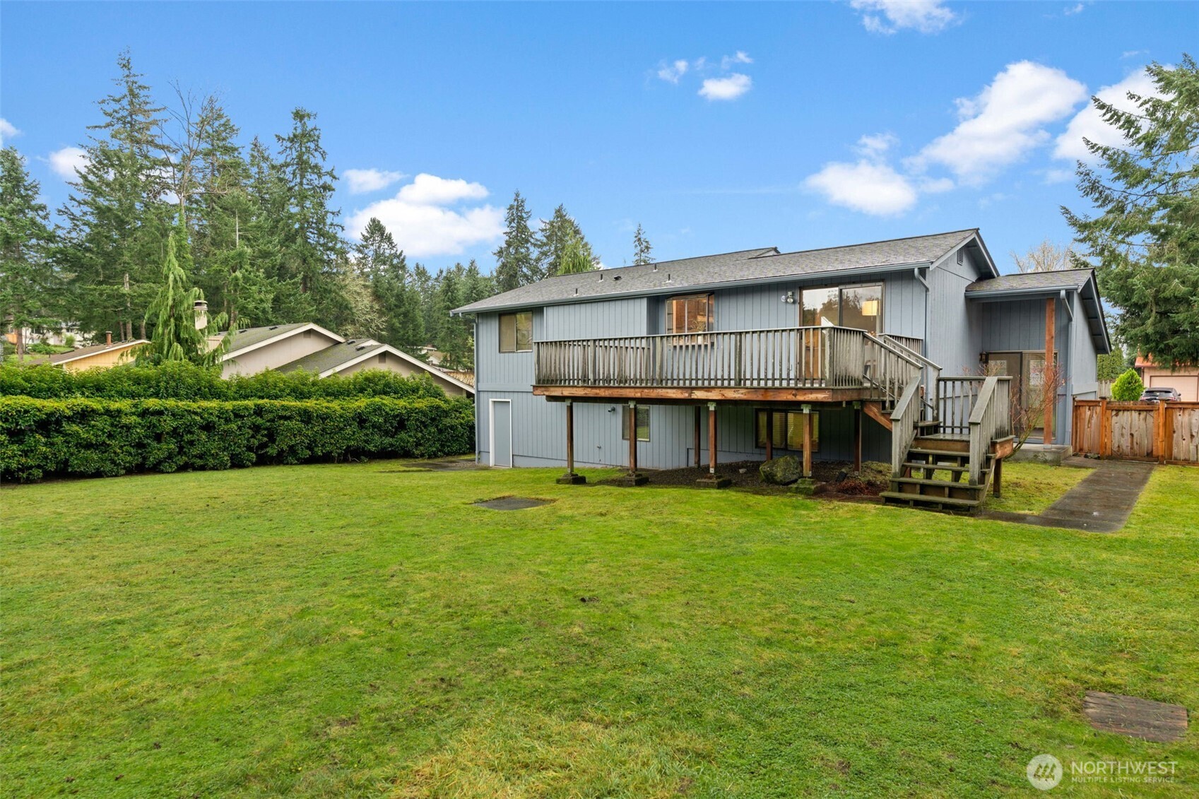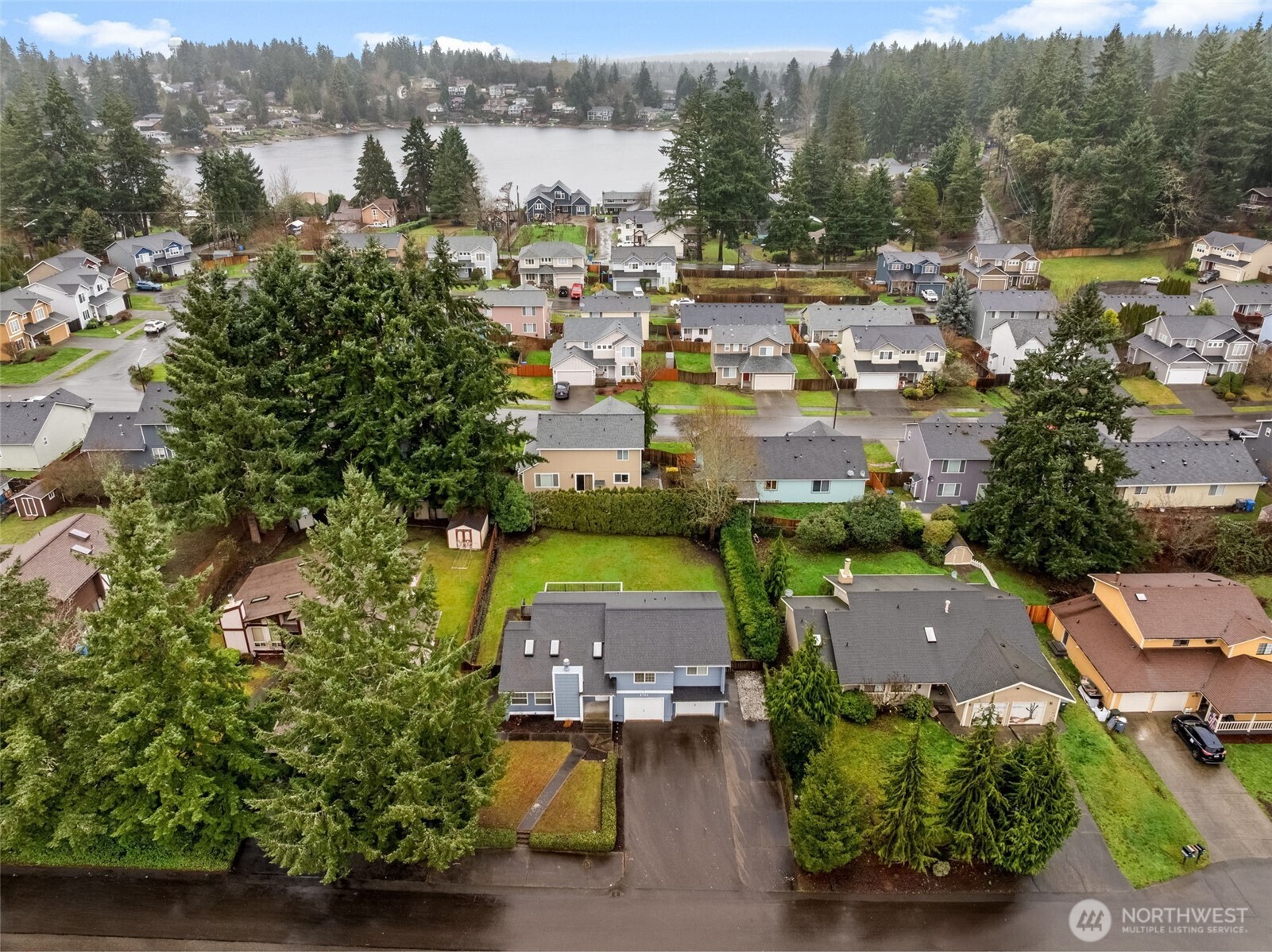Come and see this Lake Louise Community beauty! This well-maintained 3 bedroom home is in great condition and it's ready for its newest owner! Enter into the main level that features a classic, cozy wood-burning fireplace in the living room. This home has dedicated eating space with access to a spacious deck to the large back yard. The primary bedroom in this home has a nice-sized walk-in closet with an attached bath as well. Downstairs features additional living space, plenty of storage space, and a half bath as well. This home sits on a 9,000 square foot lot that has a fully-fenced back yard and an abundance of parking available! Don't miss out on this beauty! Close to JBLM, shopping, and it comes with access to a private boat launch!